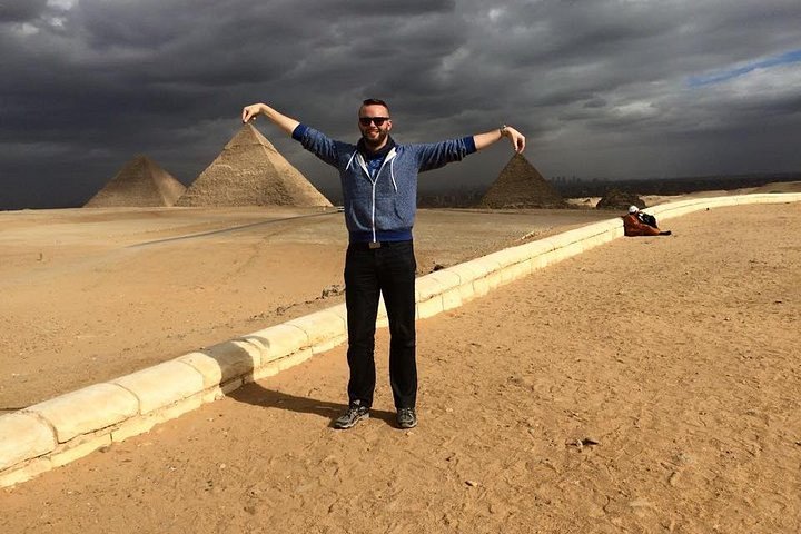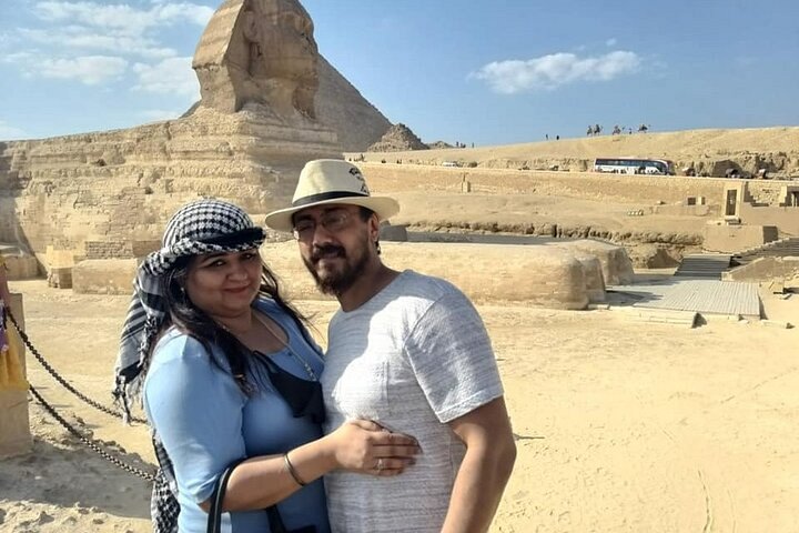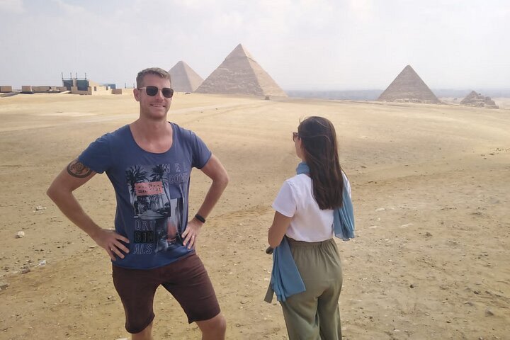 Besuchen Sie den Pyramidenkomplex von Gizeh – die Große Pyramide von Gizeh (Cheops), die Pyramide von Chephren und die Pyramide von Mykerinos. Die Große Pyramide von Gizeh (Cheops) ist die größte Pyramide, die jemals gebaut wurde. Anschließend besuchen Sie die Sphinx – dieses gewaltige Grabmal wird von der legendären Sphinx bewacht, die angeblich das Gesicht von König Chephren hat. Danach kehren Sie mit einem privaten Fahrzeug zum Hotel zurück.