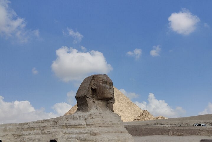 A representative of Egyptrav Tours will pick you up from your location and take you to the Giza pyramids. There, at the pyramids, view the major ones- those of Cheops, Khafra, and Menkaura, together with the Sphinx. In the hotel lobby, it is here that you will meet your Egyptologist whence straight drive in a private vehicle with air conditioning to the Giza Plateau. The exploration tour starts from the oldest among Seven Wonders of Ancient World – you will be able to see the Pyramid of Cheops; known as The Great Pyramid of Giza which also happens to be largest pyramid in world. The itinerary goes on further to include visits to Pyramids of Chephren and Mykerinos. Get an unforgettable photograph from panoramic view area plus some creative trick photos too! You will learn about architectural significance plus interesting history behind these beautiful constructions.Once at Giza Plateau one can also spot The Great Sphinx Of Giza besides trying to unravel all possible myths about being not just oldest but also largest sculptures ever built by mankind. Also, visit Valley Temple where Khafra’s body was mummified.