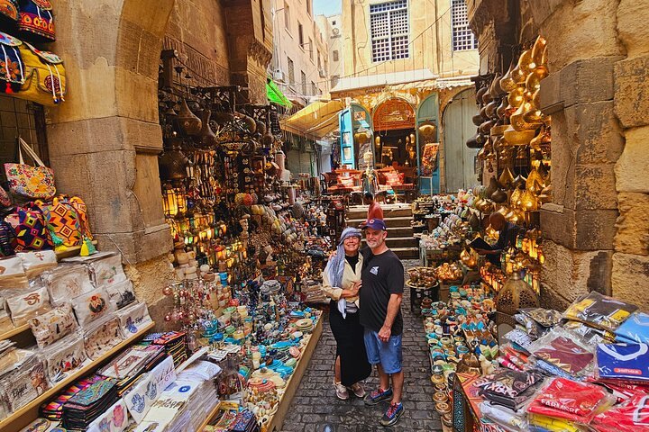 Then we will visit Khan El-Khalili Bazaar. Let yourself get lost in the busy streets of Khan El-Khalili, the oldest and liveliest bazaar in Cairo. Look at many shops that offer goods from traditional crafts and spices to jewelry and fabrics while taking in all the sights, sounds, and smells of this colorful market. When the trip ends, you will be taken back to your hotel or any place where you want to stay with memories of a day that was spent finding the wonders of Cairo's old and new scenes.