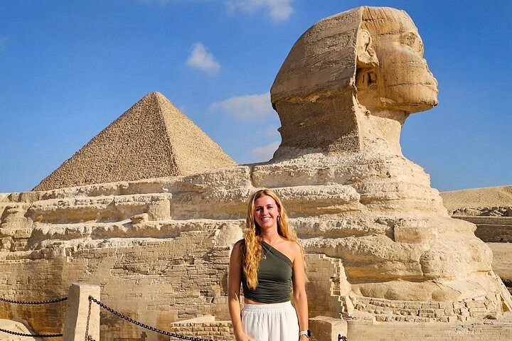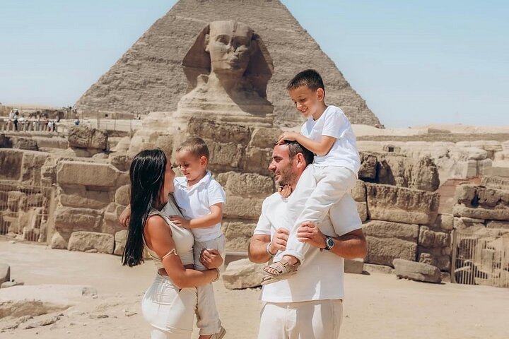 쿠푸, 카프레, 미크리노스 피라미드를 관람하며 이집트의 독보적인 풍경을 만끽합니다. 이번 여정에서는 7,000년이 넘는 역사 속에서 축적된 부와 유물에 관한 이야기를 탐구하며, 이집트 최고 수준의 서비스로 보존된 유적들을 경험하게 됩니다. 우리의 목표는 여러분이 이 여정에서 느끼는 기쁨입니다. 카이로에서 시작합니다. 쿠푸 대피라미드를 관람할 예정인데, 이는 고대 세계 7대 불가사의 중 오늘날까지 남아있는 유일한 경이입니다. 7,000년이 넘은 이 피라미드는 그 오랜 세월을 증명합니다. 카프레 피라미드를 관람하고 사진 촬영을 위한 휴식을 취한 후, 더 작은 미크리노스 피라미드로 이동합니다. 피라미드 지역에서 가장 높은 지점인 파노라마 전망대에 올라 아름다운 사진을 찍으세요. 스핑크스 방향으로 이동하기 전 1시간 무료 낙타 타기 체험이 제공됩니다. 스핑크스는 카프레 시대의 유물로 사자의 몸에 왕의 머리를 지녔습니다. 미라 제작이 이루어졌던 계곡 사원 방문 직후, 쿠푸 피라미드의 실제 수호자(스핑크스)를 직접 목격하게 됩니다.