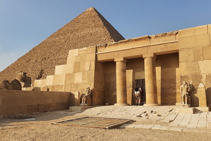 A learned guide will expound some interesting facts and stories about every monument and masterpiece to have a feeling for the artistry and precision of ancient Egyptians. By the time this tour comes to an end, she has developed a deep respect for that great culture with its lasting effect on the world. After this experience, you'll be driven to Pyramids of Giza.